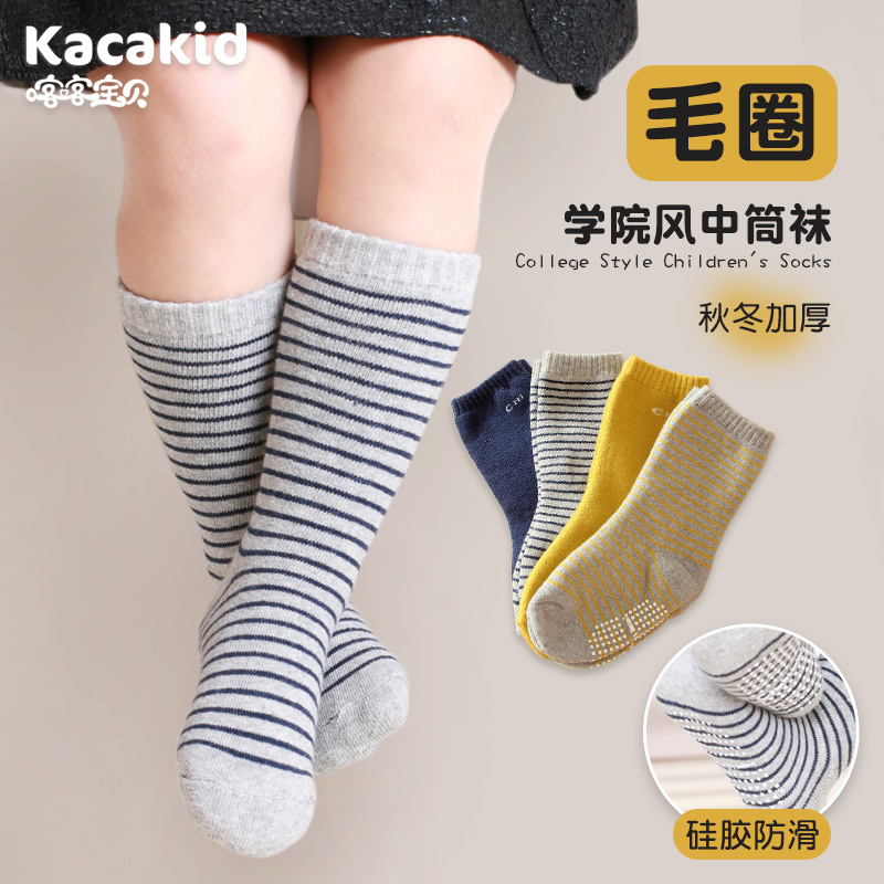 滑り止めの床の靴下の乳幼児の秋冬の新型の子供の靴下の男女の子供の綿の靴下の保温は綿の質の中で靴下を厚くします。
