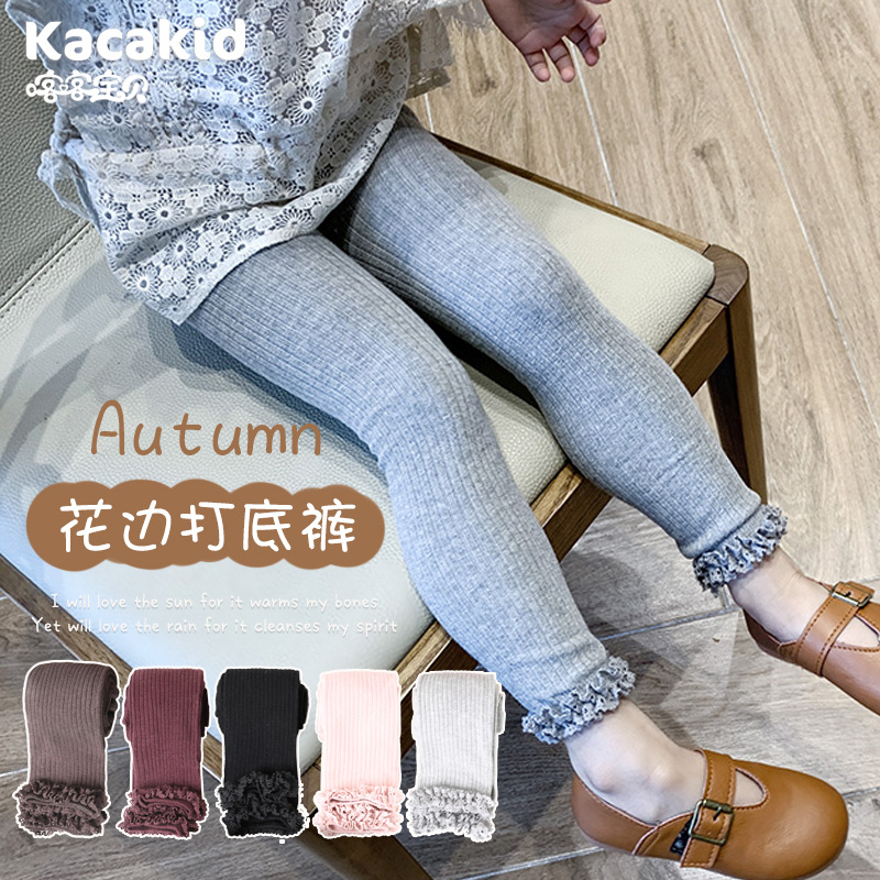 卸売りkacakid秋冬子供靴下女の赤ちゃんの木の耳元の王女のレギンスの乳幼児の綿の9分のレースのズボン