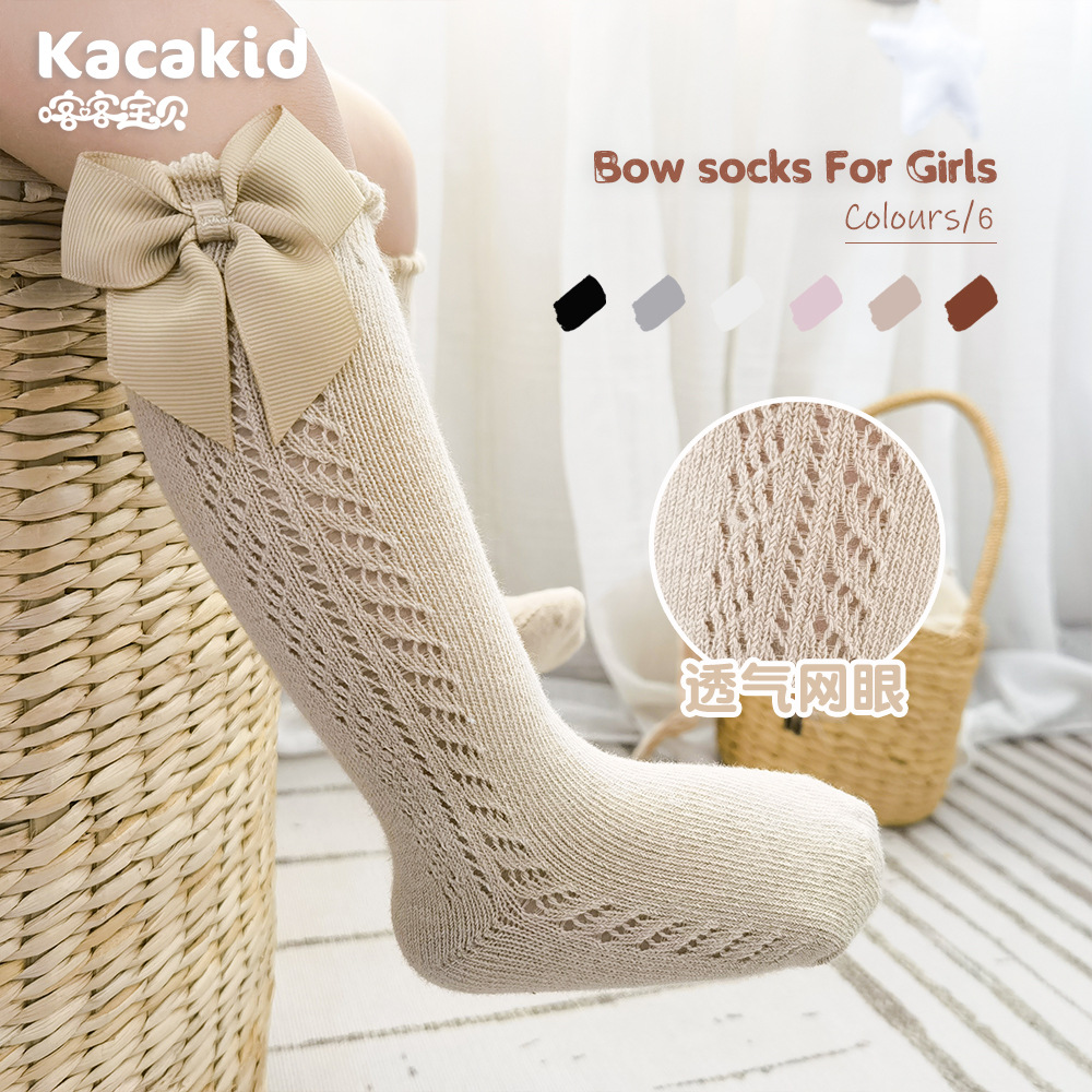 春夏の女の子kacakidソックスの子供の目の通気性の蝶結びの精練綿の靴下の卸売り
