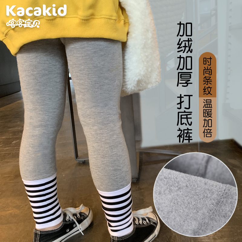 子供服の最後の商品の在庫一掃の子供のズボンのファッション的なファッションの範の女の子のベルベットのレギンスの厚い修身の白黒のストライプのつなぎ合わせのズボン