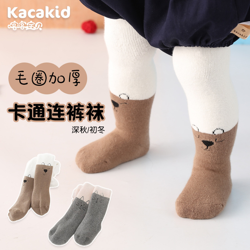 ヒッピーのパンダは厚いパンストのkacakid2023秋冬の子供の靴下の女の子の毛輪の滑り止めの靴下を厚くします。