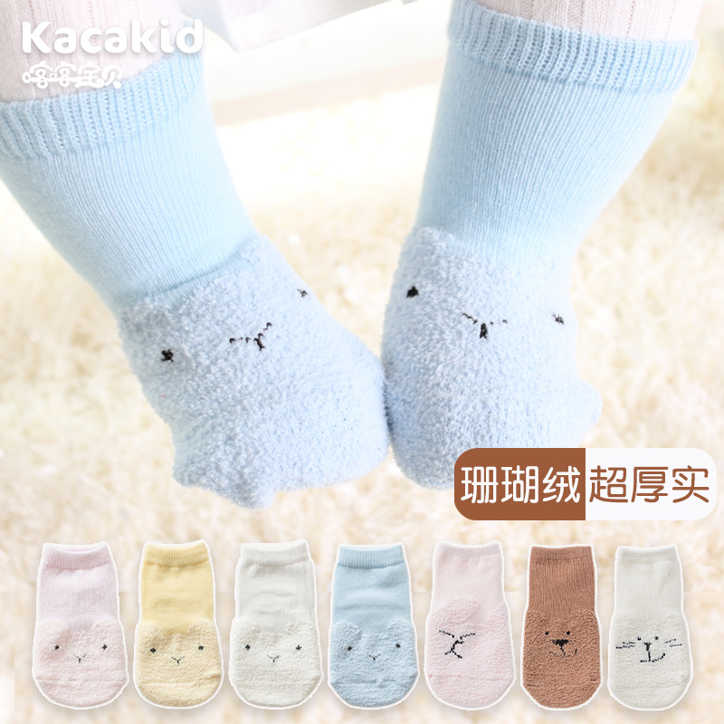 卸売り秋冬子供靴下新生児保温毛輪立体公子靴下ベビー靴下通気かわいい小動物靴靴下