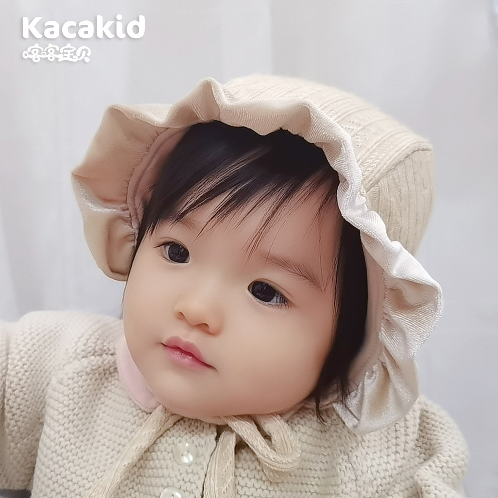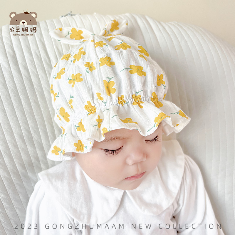 子供の帽子2023春の新しい赤ちゃんの子供の帽子の漫画の丸い点の木耳のレースの女の子の赤ちゃんの盆の帽子の日よけの帽子