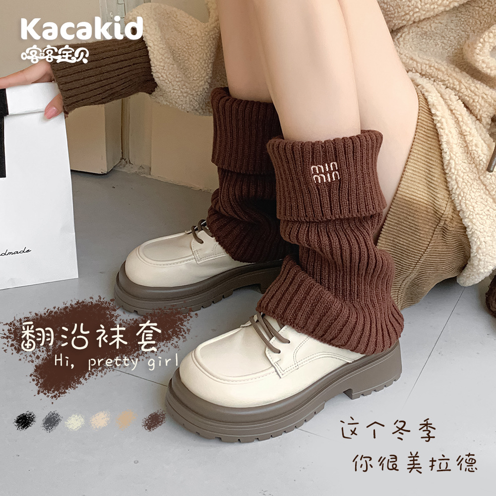 美ラード秋ニット長筒ふくらはぎ靴下靴下カバー親子で刺繍のアルファベットに沿ってネット赤で靴下を積む