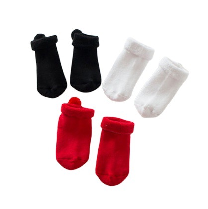 卸売りの精練綿の子供の靴下の乳幼児の秋冬の厚い毛の輪の純色の赤ちゃんの短い靴下の保温は綿の靴下に沿ってひっくり返します。