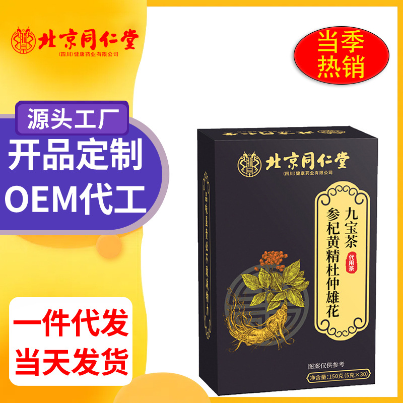 北京同仁堂参杞杜仲雄花九宝茶150g箱クコの赤いナツメのオニバスの実の黄精の男の九宝茶