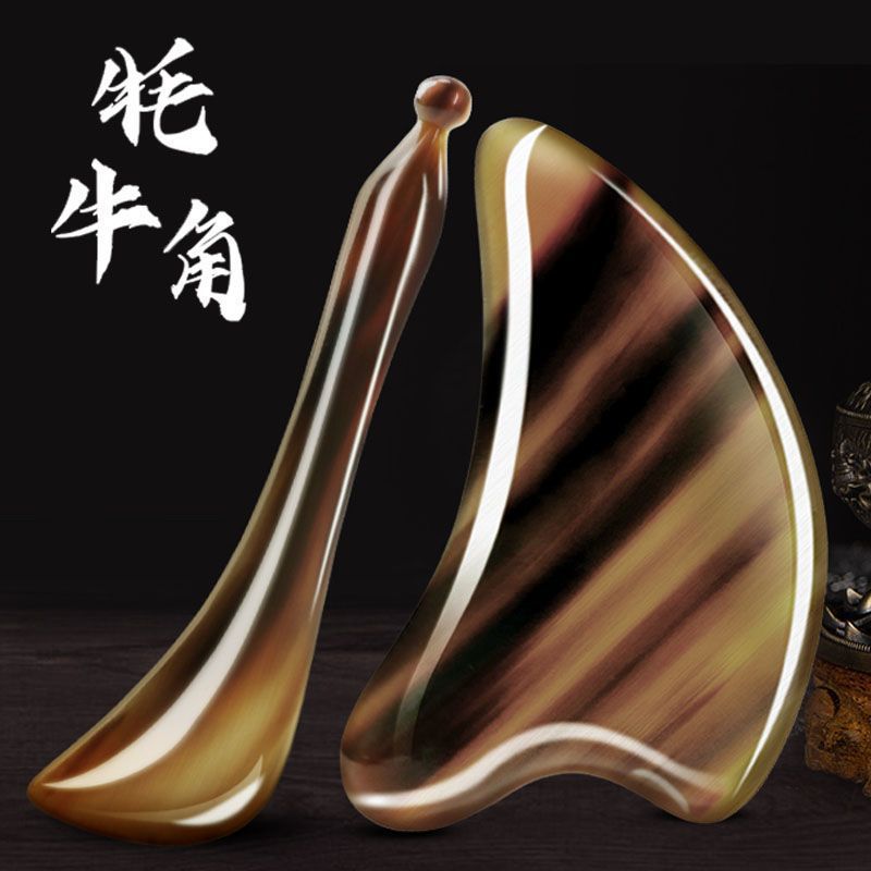 天然の牛の角は板を剃ります。女性は棒の経絡の顔の美容をかけます。