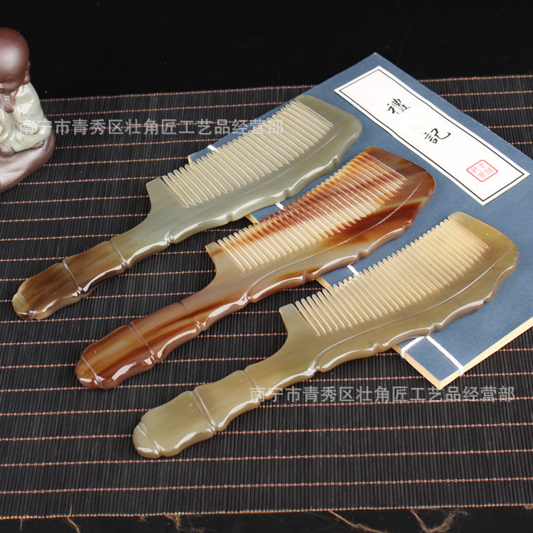 卸売り白牛角櫛ヤク角ハンドル丸柄櫛竹節櫛22センチ精品彫刻プレゼント櫛