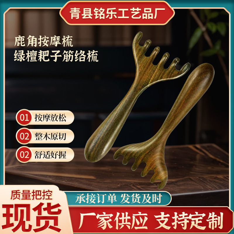 メーカーの緑檀木鹿角マッサージ器の小さい熊手の頭の経絡マッサージ櫛の家庭用品の鹿角櫛の卸売り