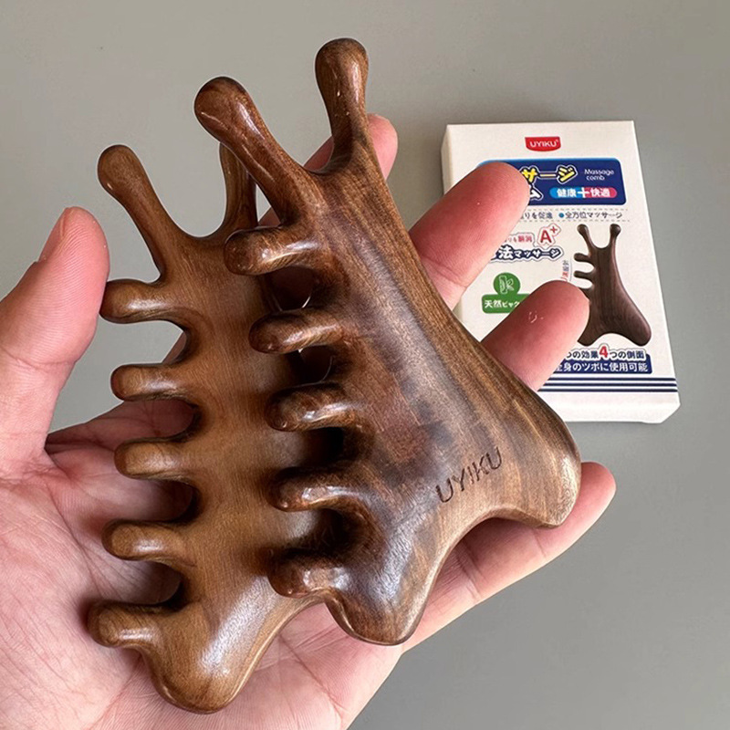 イルカマッサージ櫛木櫛頭部経絡櫛幅歯金糸赤緑檀木五指球掻き櫛静電櫛