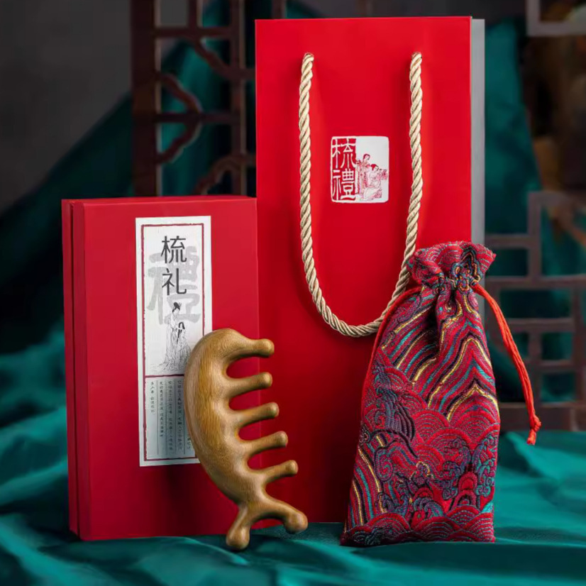 メーカー卸売り緑檀木鹿角熊手経絡櫛頭マッサージ頚部掻爬頭療養身檀木櫛