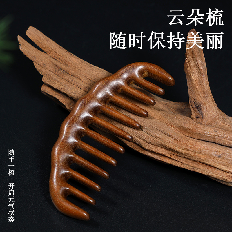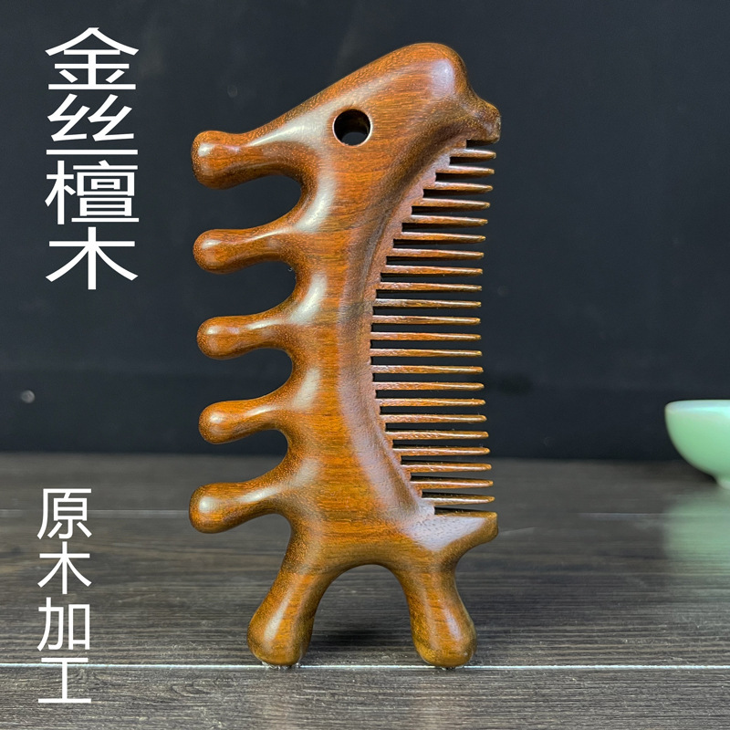 無漆金糸檀木マッサージ櫛頭皮多歯雲櫛ベルト細い歯順髪櫛経絡櫛大月櫛