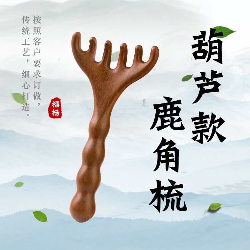 檀木鹿角マッサージ櫛頭治療ツールマッサージ爪頭皮経絡櫛頚椎リンパ掻爬