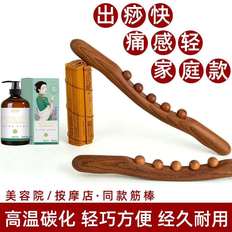 炭化五珠の筋棒家庭用ケヤキのマッサージ棒は全身一本の木質で背中の脚を掻いてマッサージします。