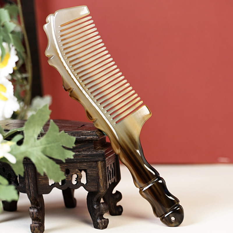 天然本物の牛角家庭用黒花竹節櫛静電気防止牛角櫛厚いヤク角経絡マッサージ櫛バッチ