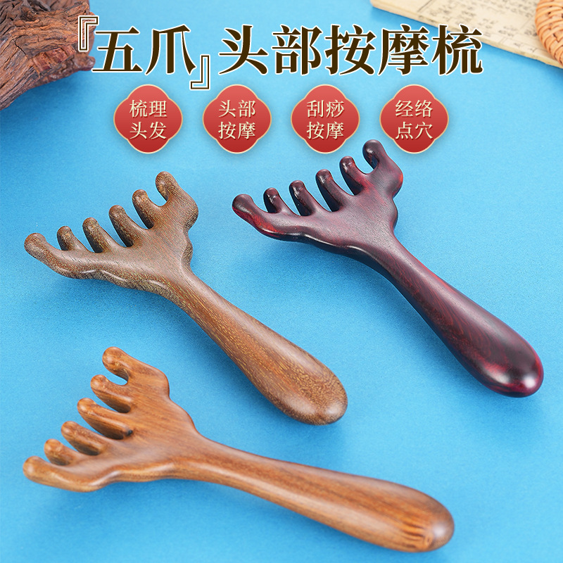 頭部マッサージ器六爪頭治療櫛マッサージ爪マッサージ経絡櫛檀木点穴掻き頭皮押頭神器