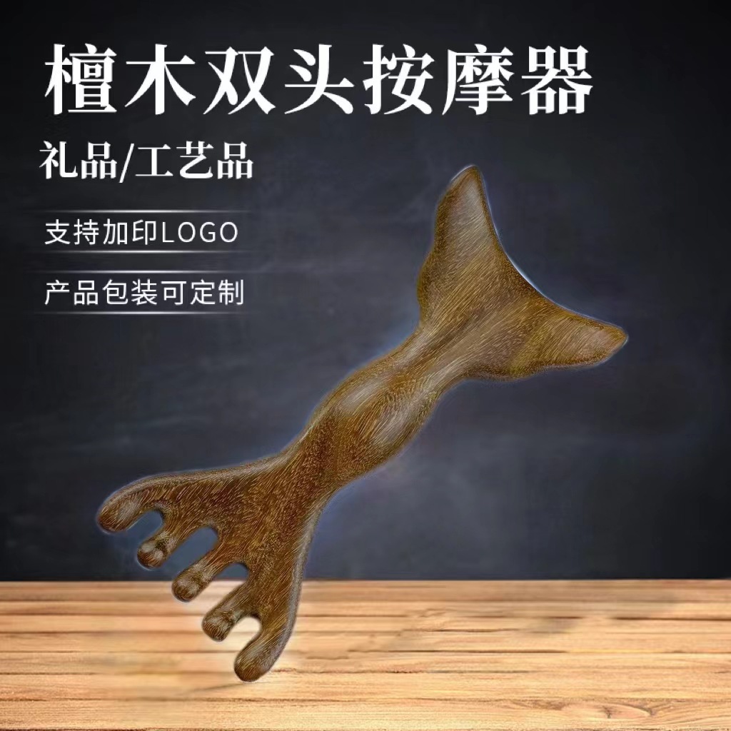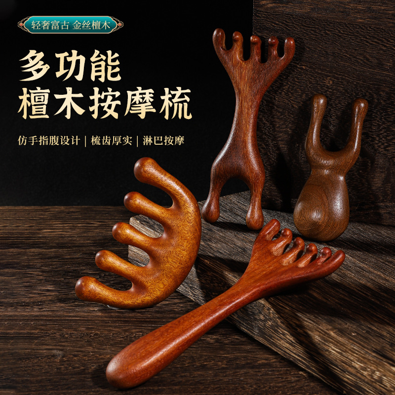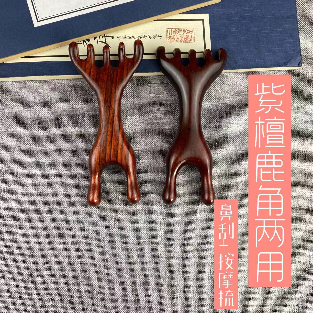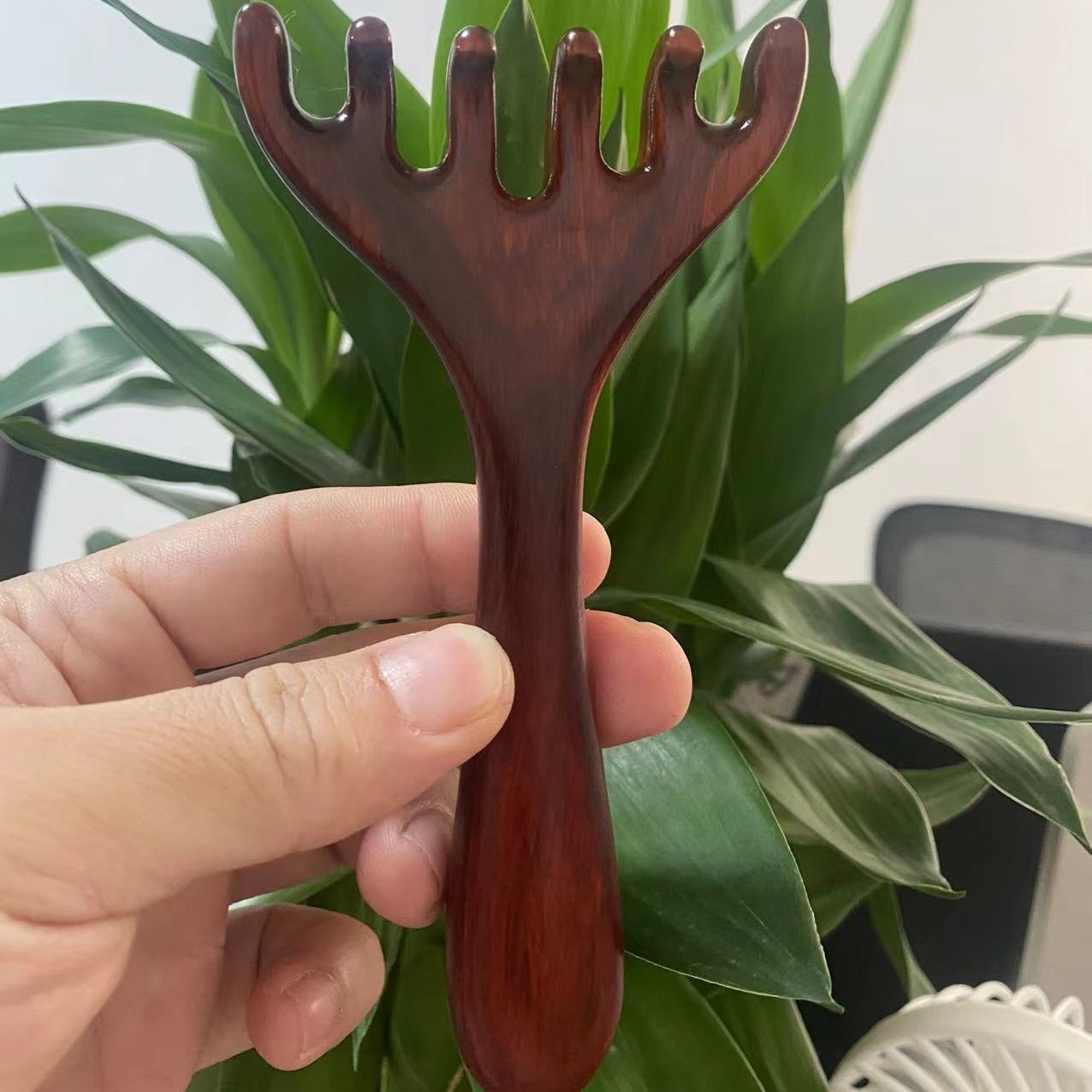 新型紫檀鹿角マッサージ櫛経絡五爪櫛両用鼻掻鹿角カエル櫛熊手長柄頭治療