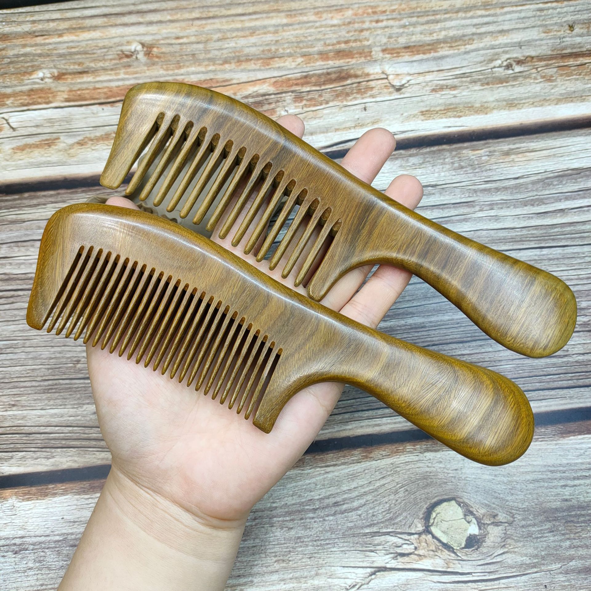 緑檀木双曲柄長柄木櫛カール直髪パーママッサージ櫛檀香木整木原木櫛