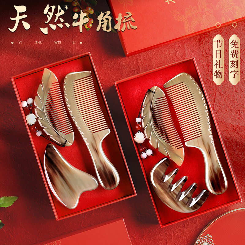 牛角櫛礼箱セット結婚櫛の女性プレゼントは静かにしてください。