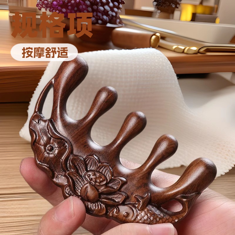 五爪マッサージ器マッサージ櫛頭部経絡櫛頭治療神器加長型実木頭治療櫛小櫛