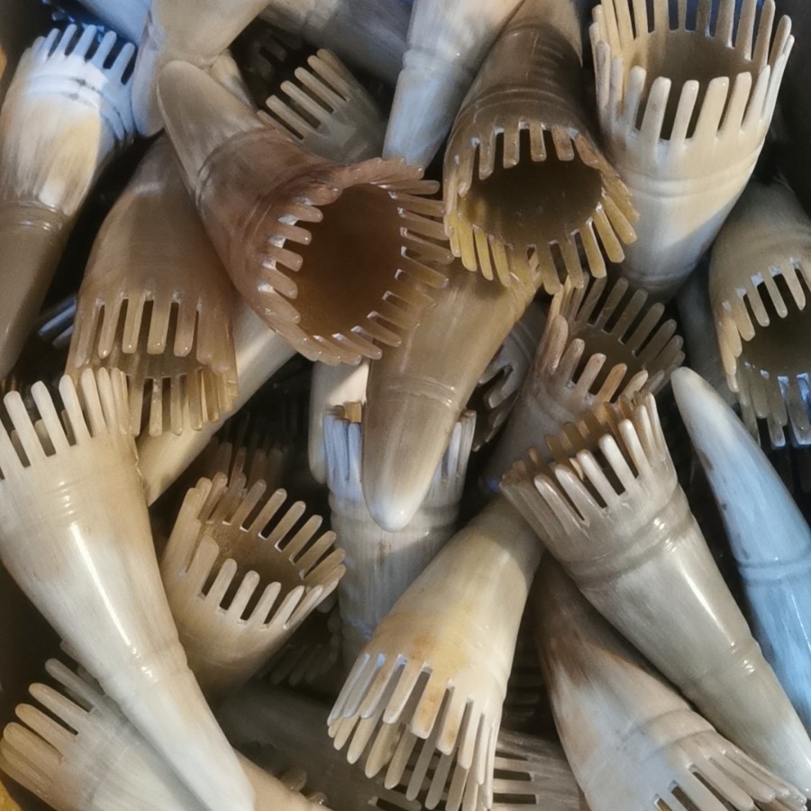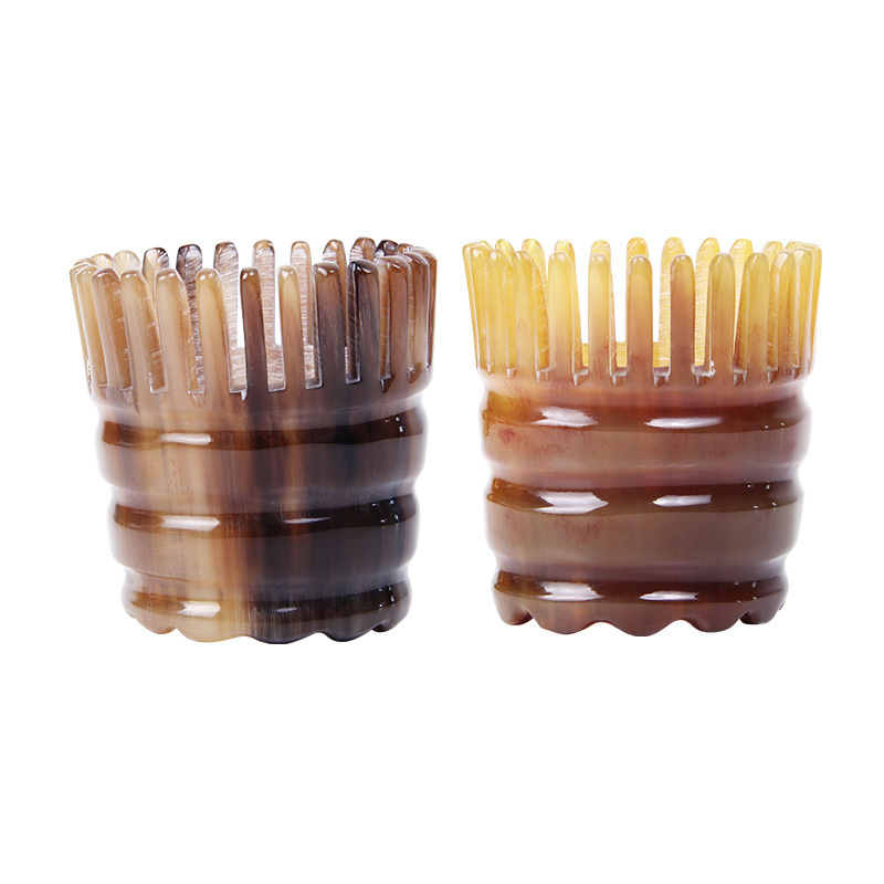 牛の角の頭のマッサージ器の牛の角の櫛の髪を洗って櫛をマッサージします。