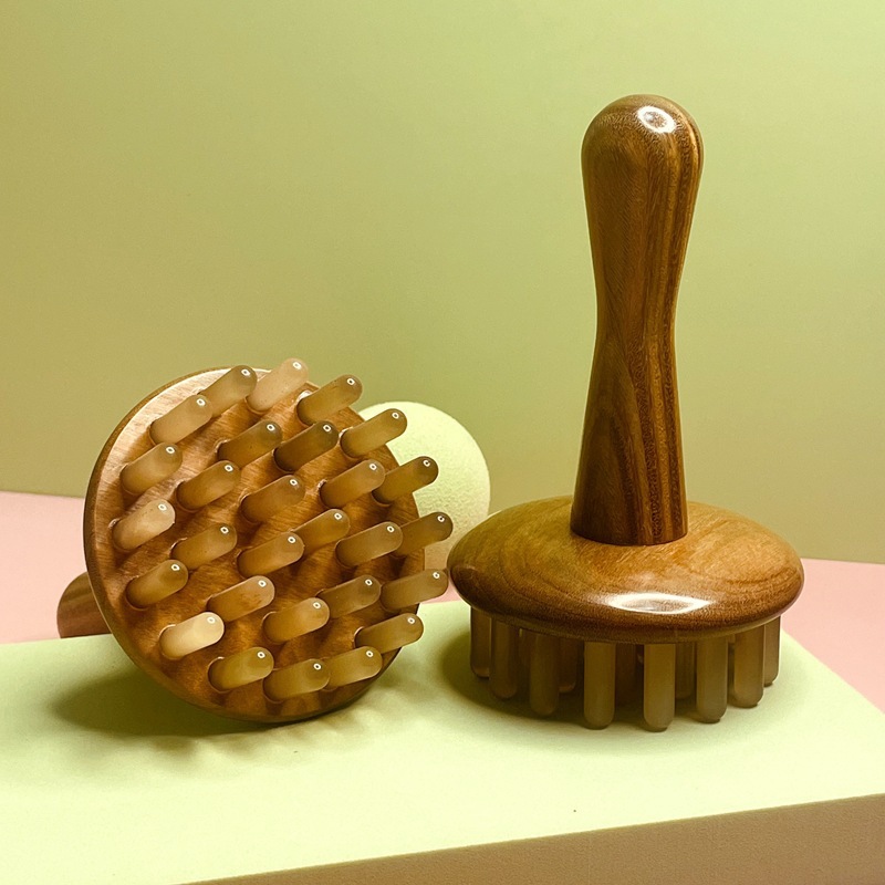 メーカー卸売天然香り緑白檀ホーンマッサージコームリングコームヘッド子午線ブラシスクレーピングヘッドセラピーネイル