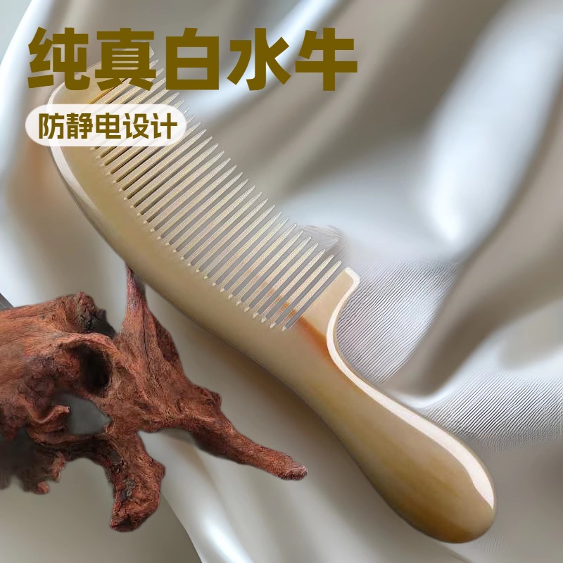 純真白水牛角櫛天然正規品レディースロングヘア専用メンズ家庭用通経絡防止櫛静電気脱