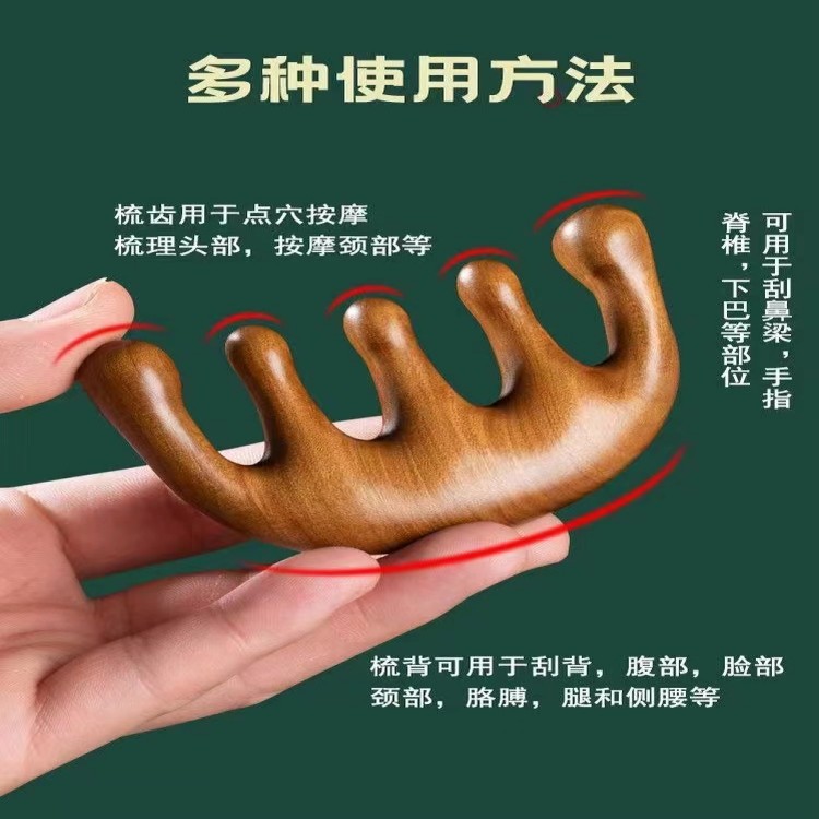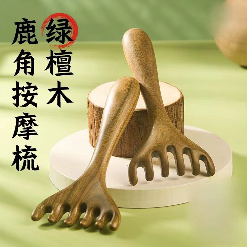 緑檀五爪マッサージ櫛経絡櫛全身養生頭治療ツール緑檀木櫛