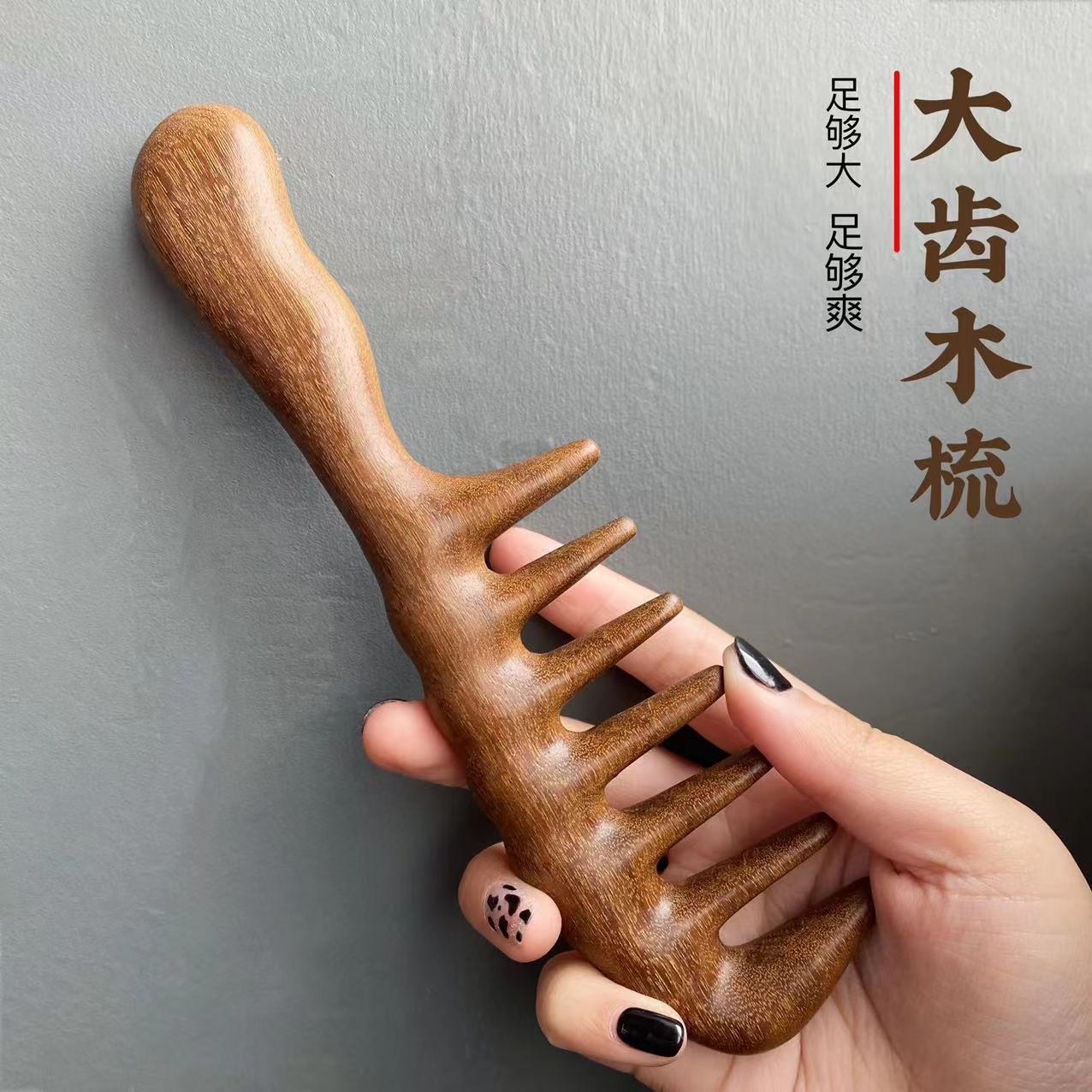 檀木経絡櫛金糸緑檀大柄櫛木製マッサージ頭部経絡頭皮ワイド歯長い柄マッサージ櫛
