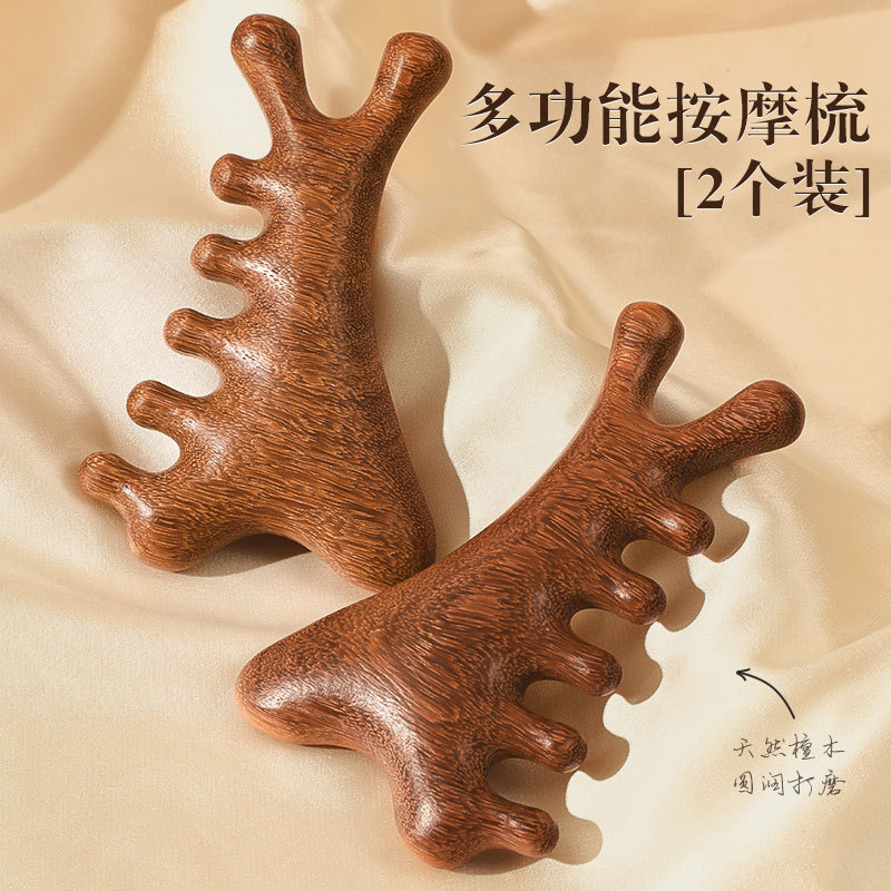 多機能フォーインワンサンダルウッドコーム、頭皮マッサージコーム、ヘッドセラピー、スクレーピング、経絡浚渫、顔と目のアーティファクト
