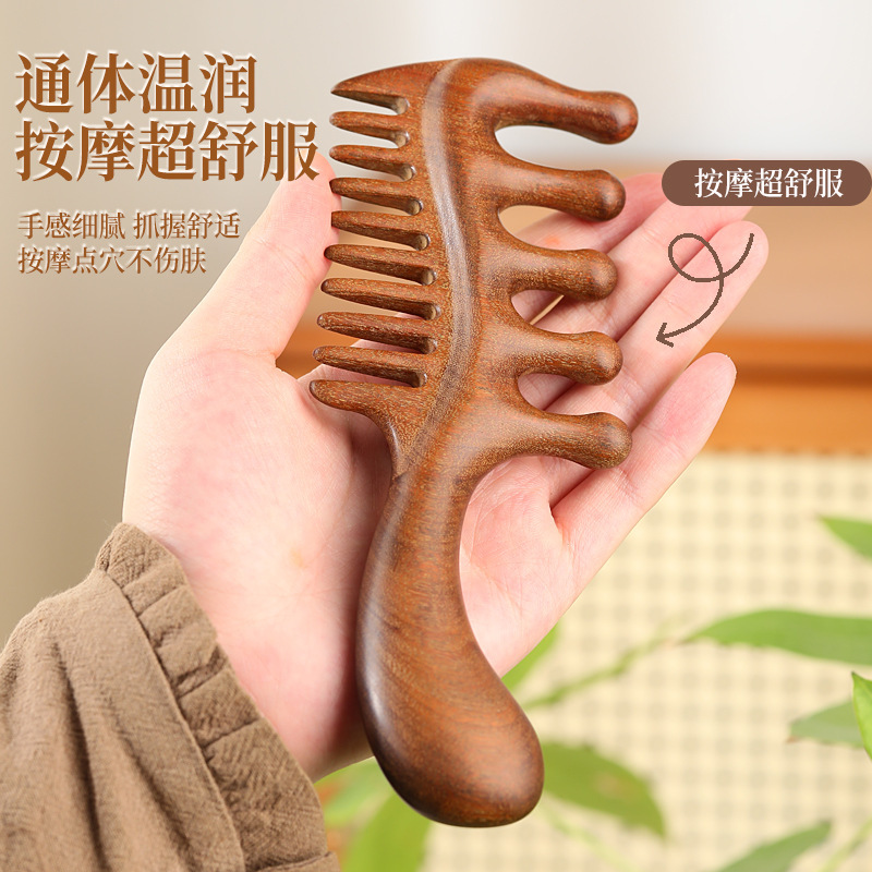 金糸檀木櫛マッサージ櫛頭部経絡櫛五歯櫛頭治療神器広歯櫛経絡マッサージ櫛