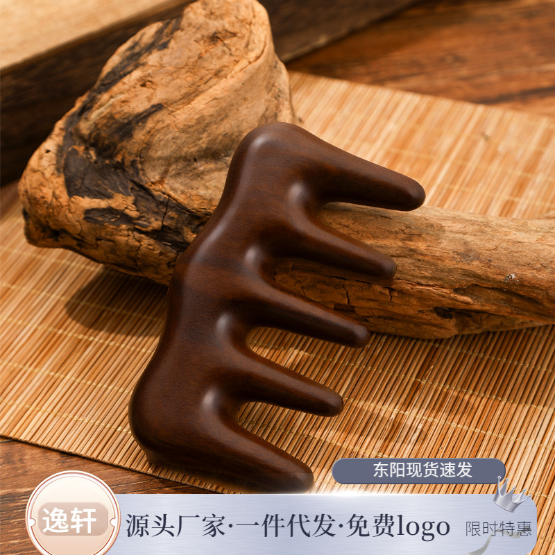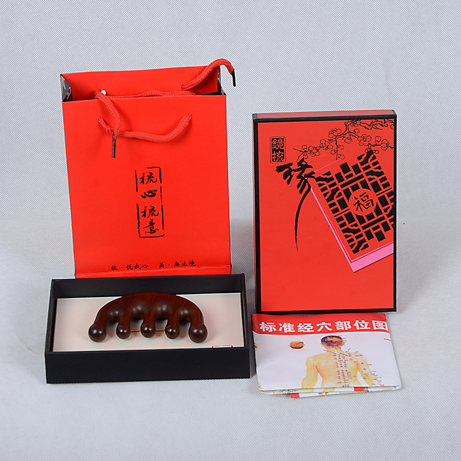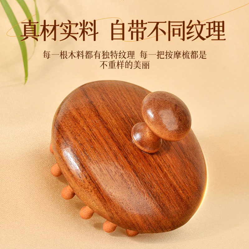 多機能檀木四合一マッサージ櫛掻爬点穴頭部経絡櫛頭治療脱毛筋穴