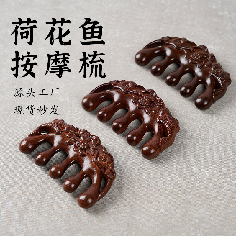 金糸檀木マッサージ櫛頭皮経絡櫛両面ハス魚五指檀木櫛工芸品マッサージ櫛