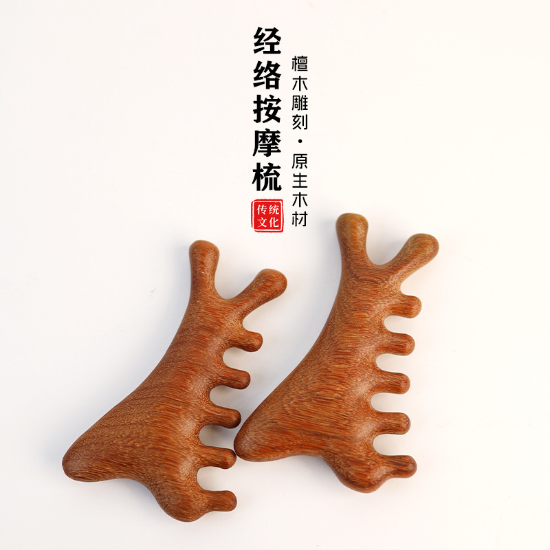 檀木四合一経絡マッサージ櫛鹿角熊手多機能頚部掻爬点穴掻眼マッサージ器