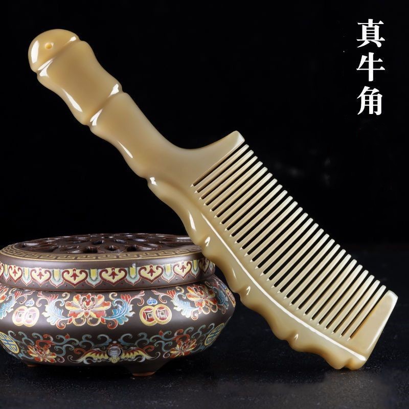 正規品牛角櫛牛角逸品竹節櫛厚金ヤク角櫛頭経絡マッサージ櫛プレゼント