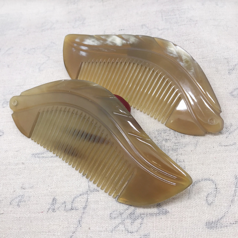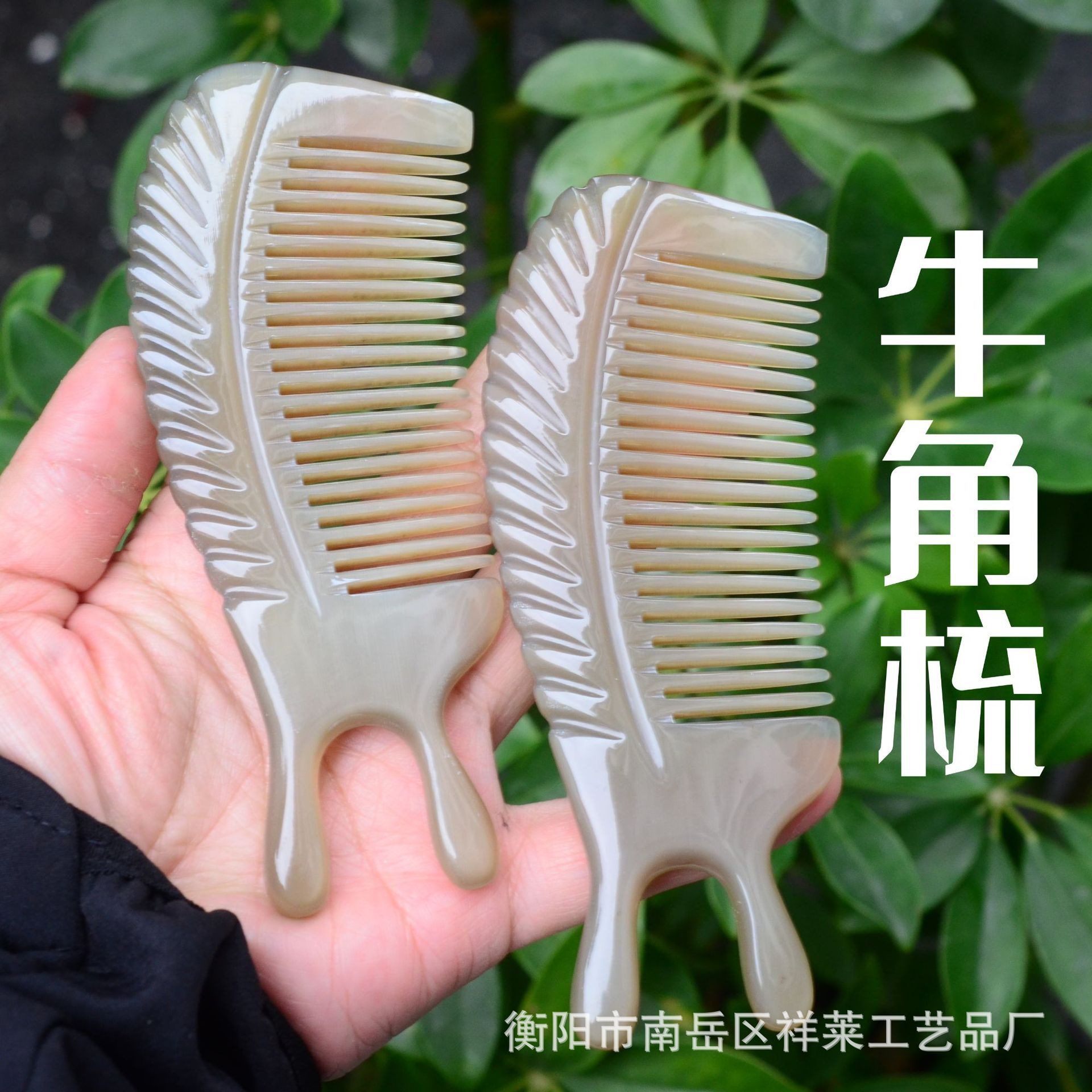 逸品は厚い葉の形の牛の角の櫛の観光地区の商品の供給源の彫刻の櫛の保健のマッサージは静電気の美容の櫛がありません。