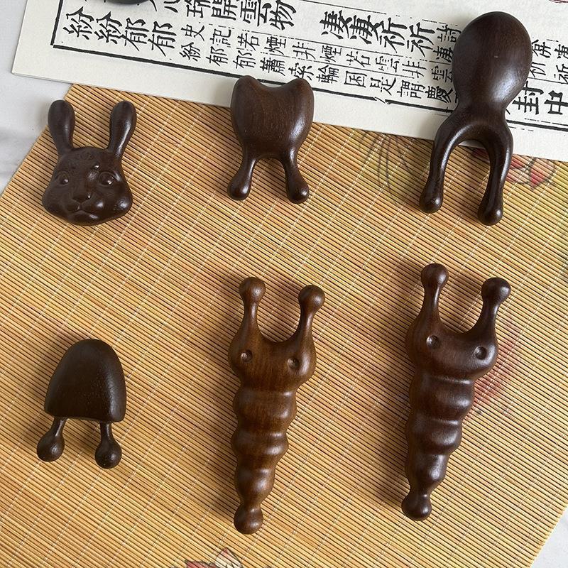檀木眼部マッサージ櫛耳鼻筋絡器淡々とした小紋カエルが筋棒面ウサギの経絡櫛