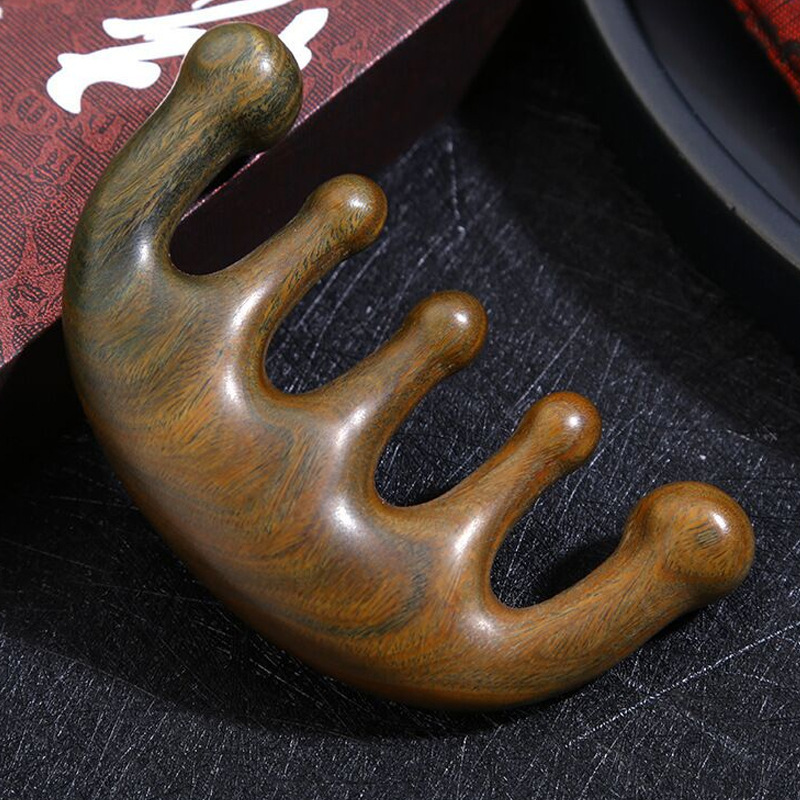 金糸緑檀マッサージ櫛厚手経絡櫛肩首マッサージ丸頭掻き五歯球頭天然緑檀木