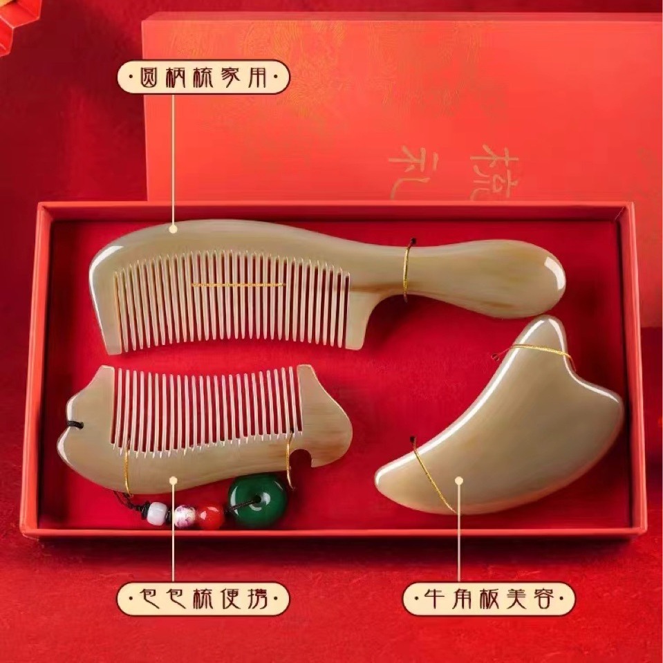 クロスボーダー中国風マッサージ櫛金糸檀木櫛牛角櫛頭皮経絡多機能家庭用静電気防止