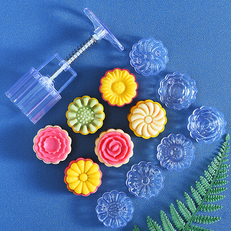 正恵透明立体バラの月餅の型の手は花の型の焙煎ツールのセットの中秋の月餅の型を押します。