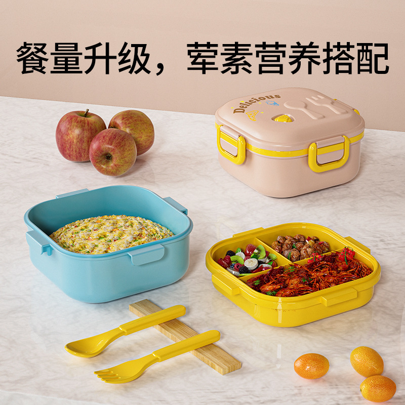 現代シンプルな三四分格弁当箱学生弁当箱スープ箱付きマイクロ波オフィスピクニック成人ランチボックス