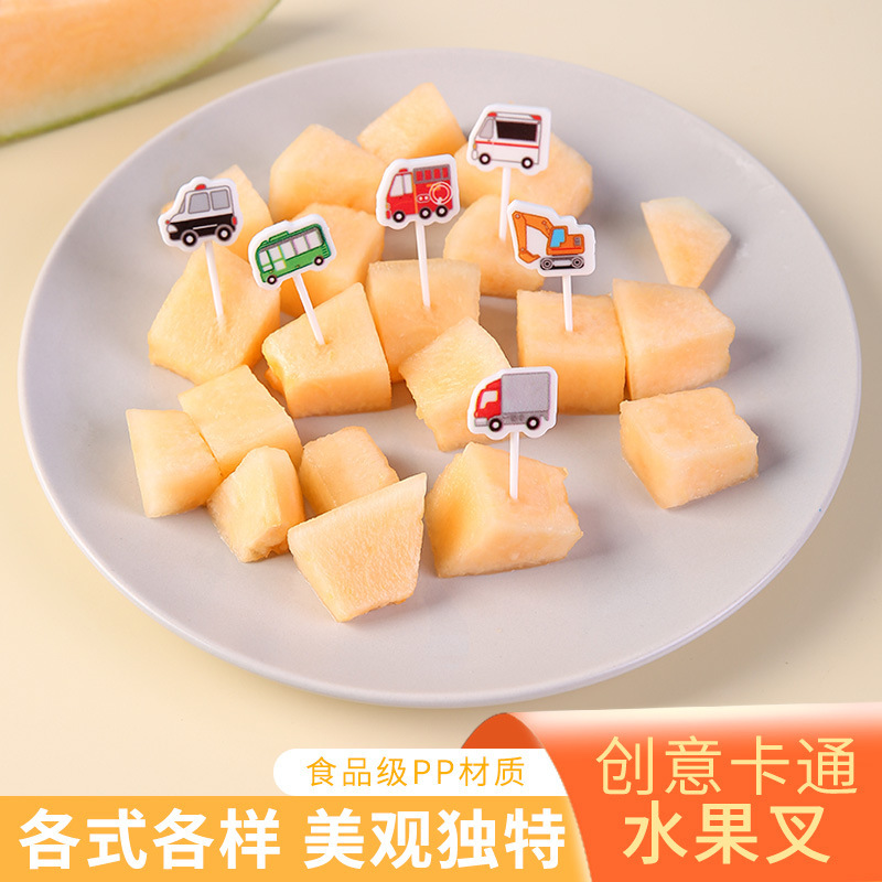 創意的な小さい車の果物の署名の交通手段の果物のフォークの子供のお菓子のフォークのケーキのかわいいお弁当の署名