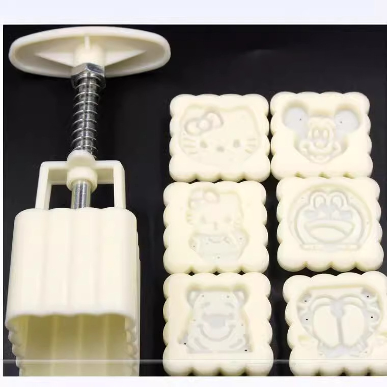 正恵手押し式氷皮月餅金型100グラム月円形角餅金型セット4枚韓国版花片