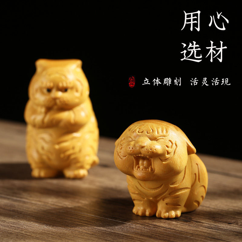 卸売りの崖柏の黄楊木虎はアイデアを飾って、デスクトップを遊んで木の工芸品を飾って、虎の置物を萌えます。