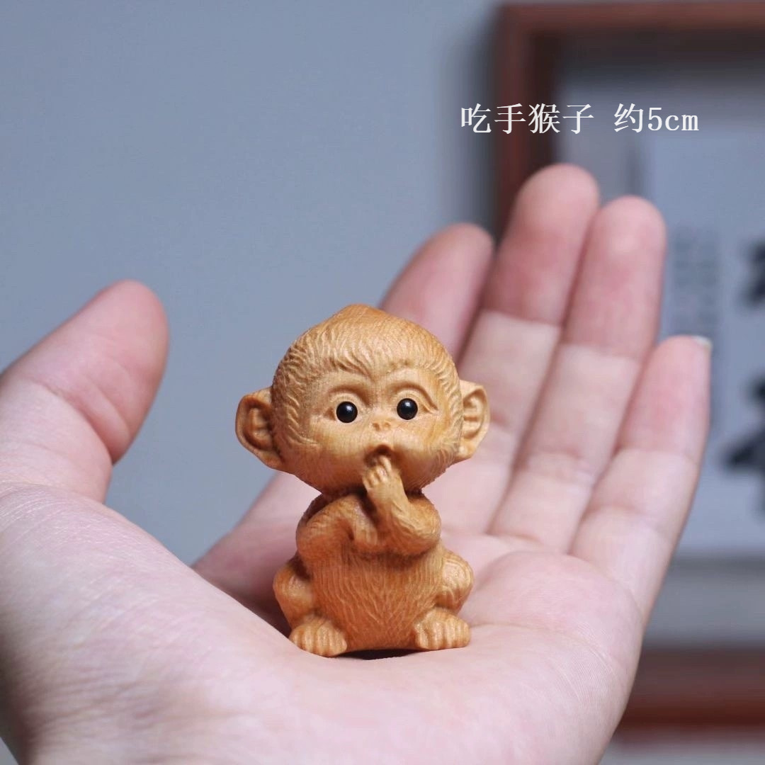 卸売りの崖の柏の小さいサルの手の件の実木の彫刻は身につけてかわいい文を遊んで手のサルの手の件を食べます。