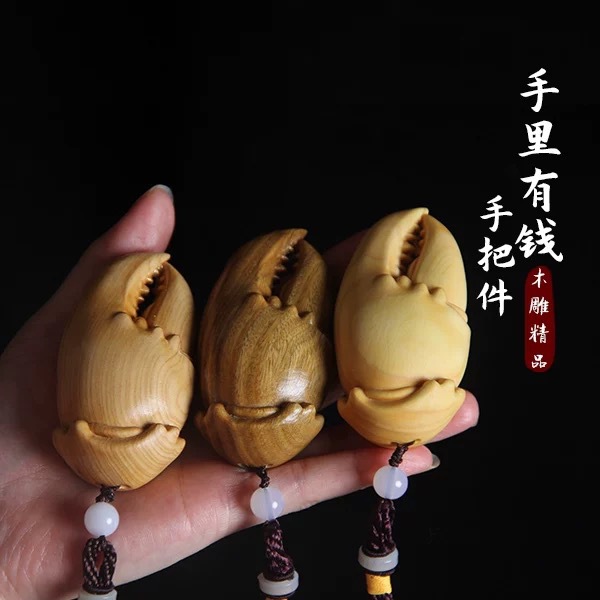 卸売りの崖の柏の黄楊木の鐘の手の取っ手の件のかわいいq版の実木の彫刻の創意の文は小さい鐘の手の件を遊びます。