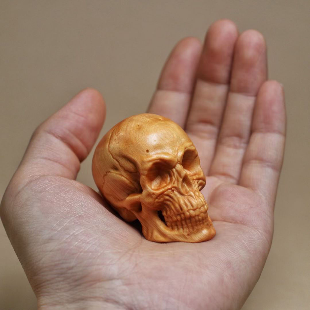 卸売りの崖の柏のスカルの取っ手の件の実木の彫刻の創意の文は遊んでもいいです。