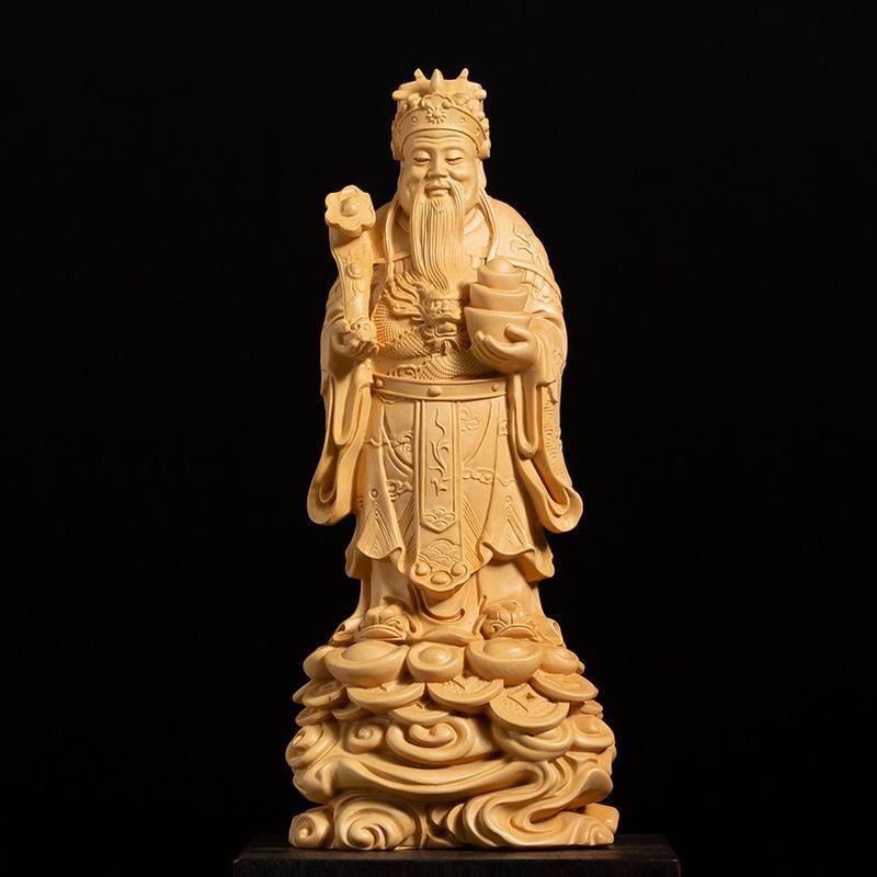 卸売りの崖柏の財神の置物の木造工芸品の創意的な家庭装飾の実木彫刻の財神の置物