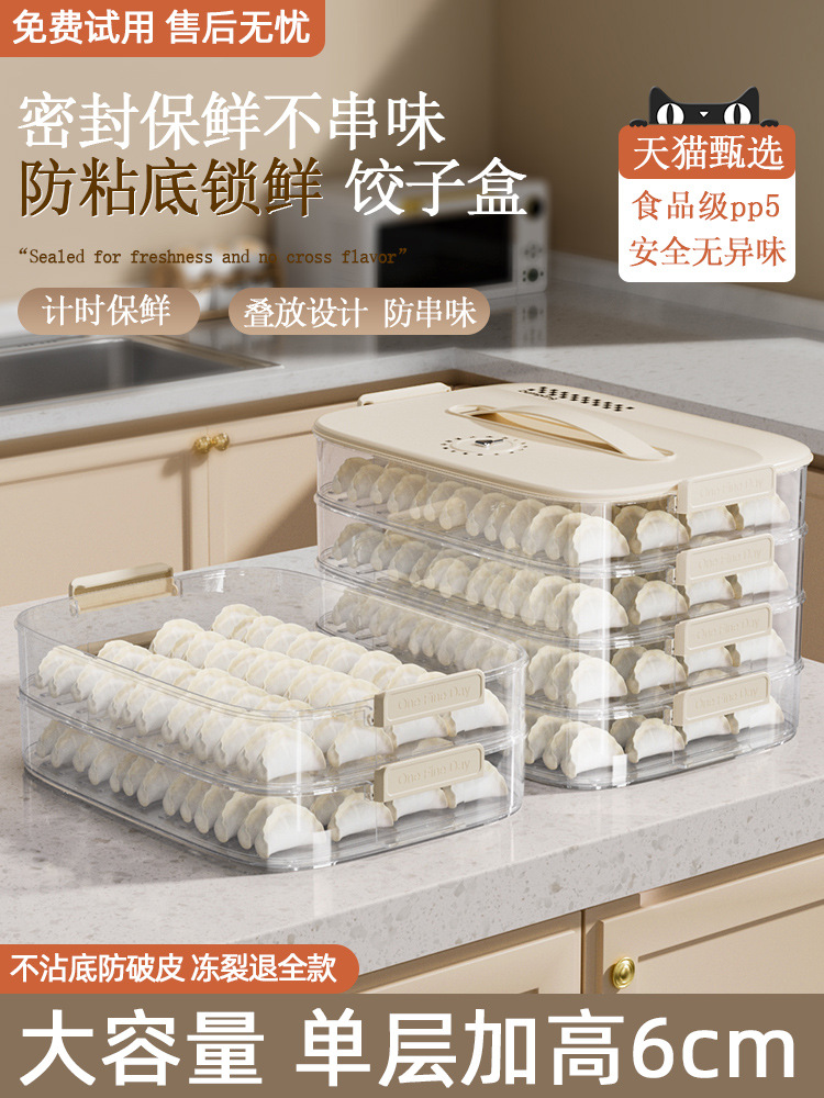 冷蔵庫用餃子保存箱、食品グレードの密封鮮度保持箱、家庭用多層餃子とワンタン急速冷凍トレイ