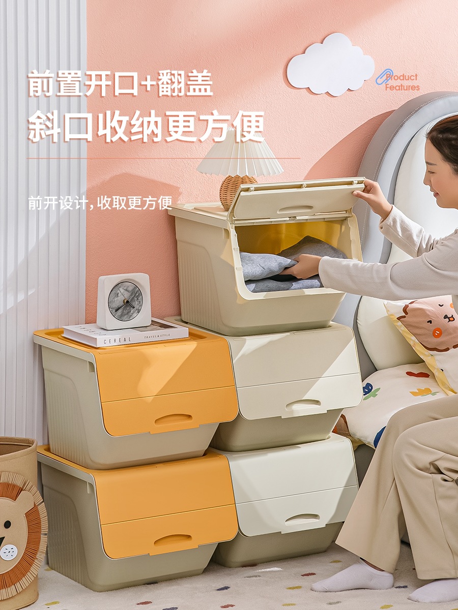 日本のおもちゃ収納ボックスフロントオープン家庭用フリップトップ収納ボックス収納子供のスナック衣類整理収納バスケット